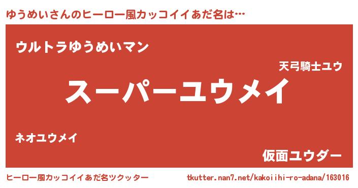 | ファンタジー風あだ名 | 『ユウフェル』『エターナルユウメイー』 |