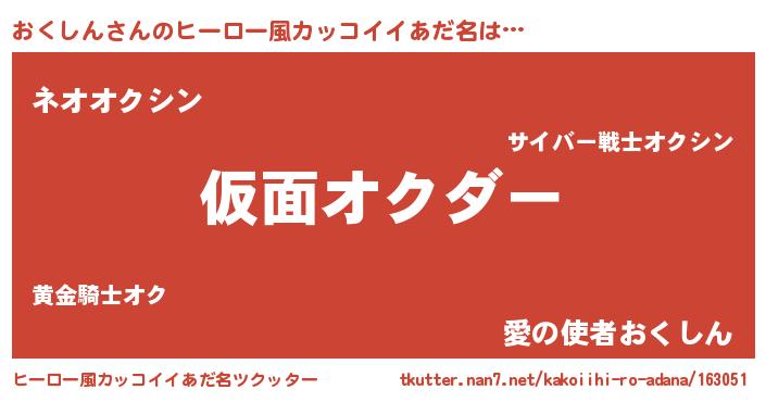 | 男性向けラノベタイトル風あだ名 | 『この素晴らしい世界におくしんを!』 |