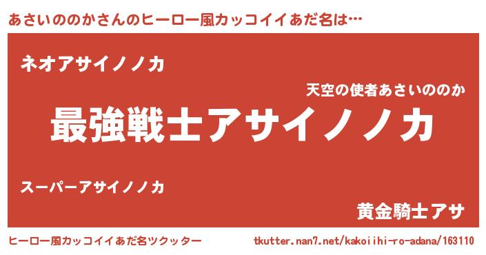 | 女子向けラノベタイトル風あだ名 | 『あさいののかストレイドッグス』 |
