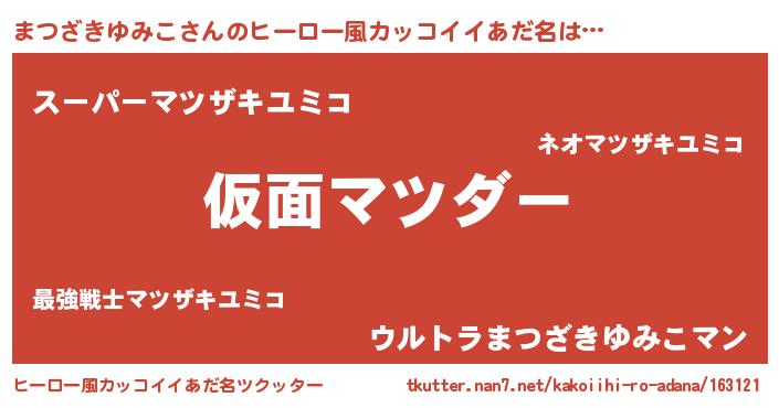 | 男性向けラノベタイトル風あだ名 | 『この素晴らしい世界にまつざきゆみこを!』 |