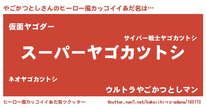 | ポケモン風あだ名 | 『ヤゴチュウ』『ヤーゴイ』 |