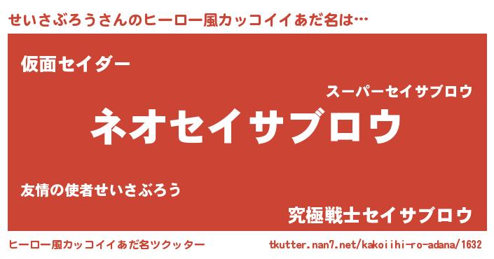 | 意味不明あだ名 | 『永久保存せいさぶろう』 |