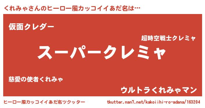 くれみゃさんのヒーロー風カッコイイあだ名をツクッター!