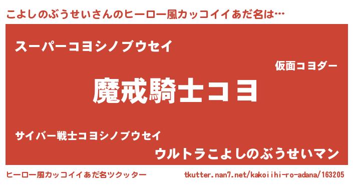 | 欧米人風あだ名 | 『ウサインこよしのぶうせい』 |