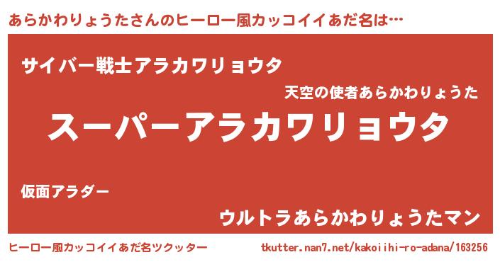 | 男性向けラノベタイトル風あだ名 | 『アラカワリョウタアートオンライン』 |