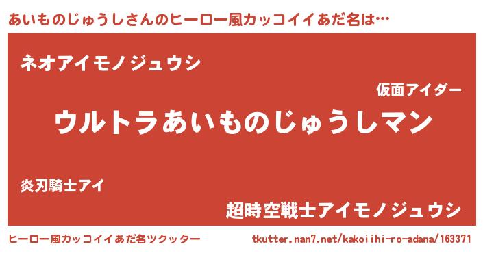 | 女子向けラノベタイトル風あだ名 | 『あいものじゅうしの雑貨屋さん』 |
