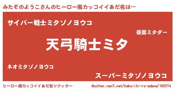 みたぞのようこさんのヒーロー風カッコイイあだ名をツクッター!