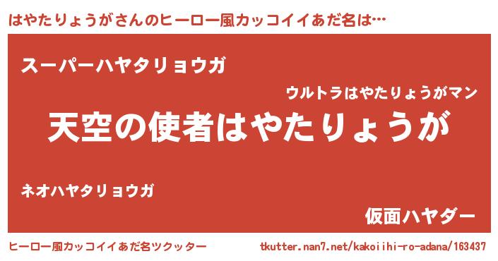 | 男性向けラノベタイトル風あだ名 | 『ノーゲーム・ノーハヤタリョウガ』 |