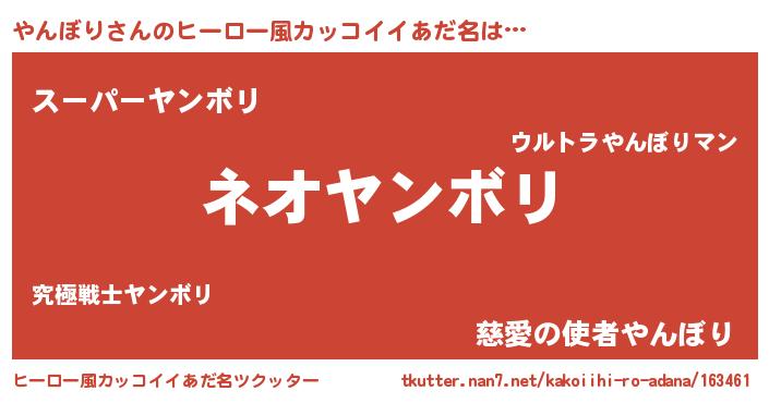 | 胡散臭い通販商品みたいなあだ名 | 『来世でも幸せになれる水素水…その名も「やんぼり」』 |