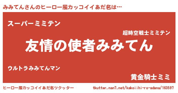 | 意味不明あだ名 | 『めかぶ科みみてん属』『自称みみてん』 |