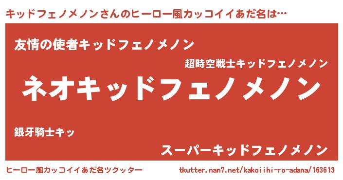 | 意味不明あだ名 | 『永久保存キッドフェノメノン』 |