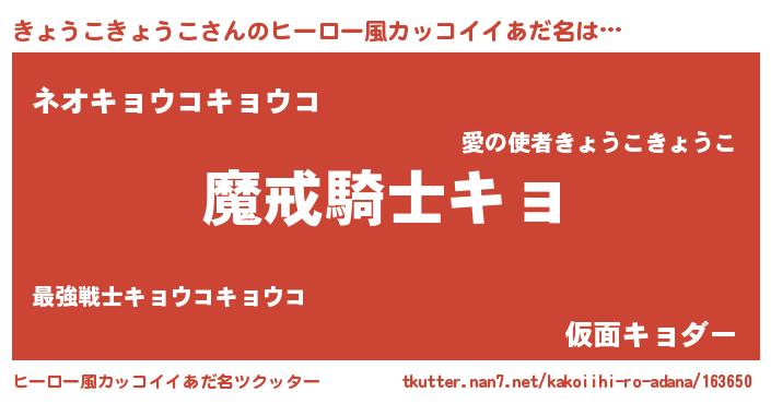 | ヘコむあだ名 | 『きょ太郎』『きょうこきょうこ(笑)』 |