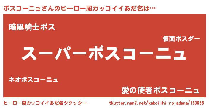 | ポケモン風あだ名 | 『ボスチュウ』『ヒボスコーニュ』 |