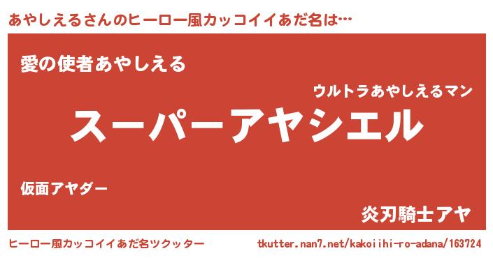 | 男性向けラノベタイトル風あだ名 | 『あやしえるの憂鬱』 |