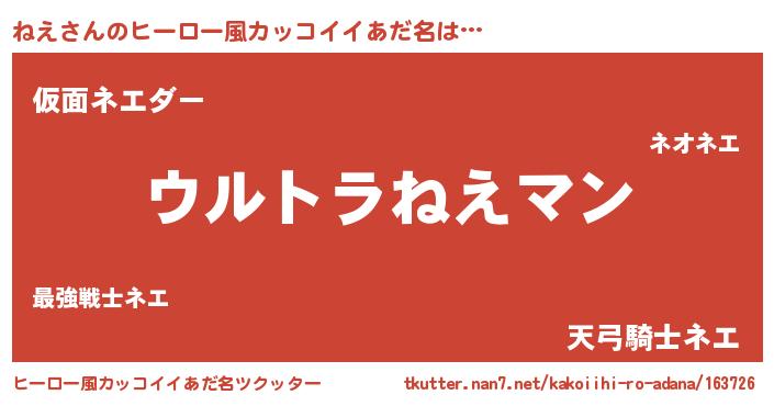 | 女子向けラノベタイトル風あだ名 | 『ねえの雑貨屋さん』『ねえは平凡を望む』 |