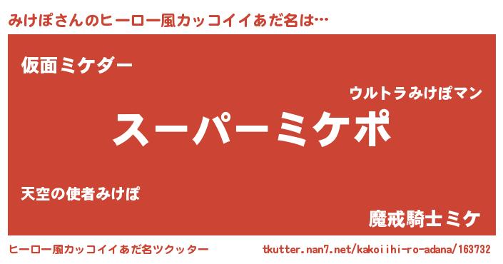 | 胡散臭い通販商品みたいなあだ名 | 『必ず成功する霊験あらたかなお札…その名も「みけぽ」』 |