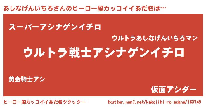 | 意味不明あだ名 | 『自称あしなげんいちろ』 |