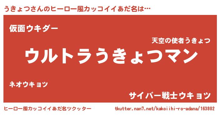 | 女子向けラノベタイトル風あだ名 | 『うきょつの雑貨屋さん』『闇のうきょつ』 |