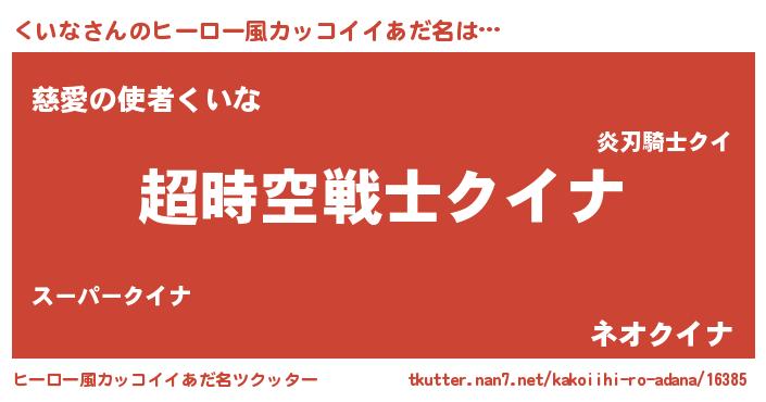 | 女子向けラノベタイトル風あだ名 | 『くいななんてお断りですっ。』 |