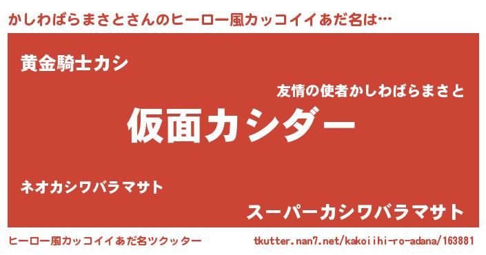 | 意味不明あだ名 | 『住所不定無職かしわばらまさと(77歳)』 |