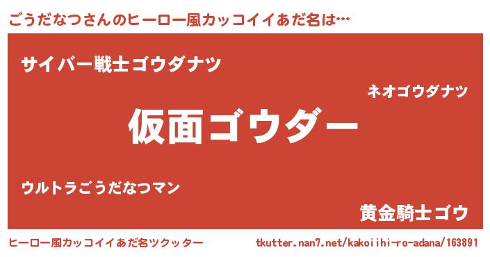 | 男性向けラノベタイトル風あだ名 | 『ごうだなつ~年齢イコール彼女いない歴の魔法使い~』 |