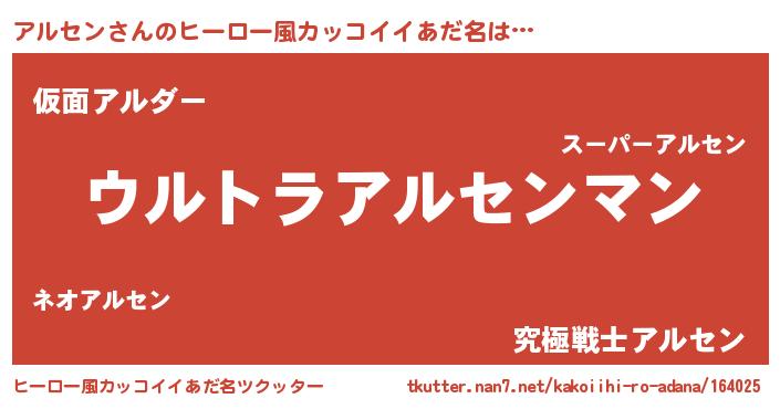 | 女子向けラノベタイトル風あだ名 | 『アルセンの雑貨屋さん』『闇のアルセン』 |