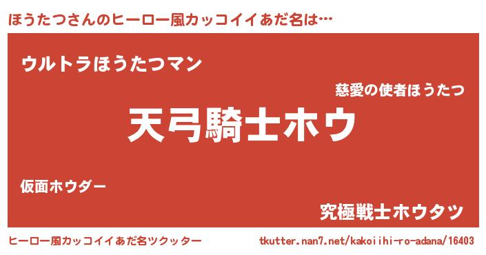 | ポケモン風あだ名 | 『ヒホウタツ』『ホウタダネ』 |