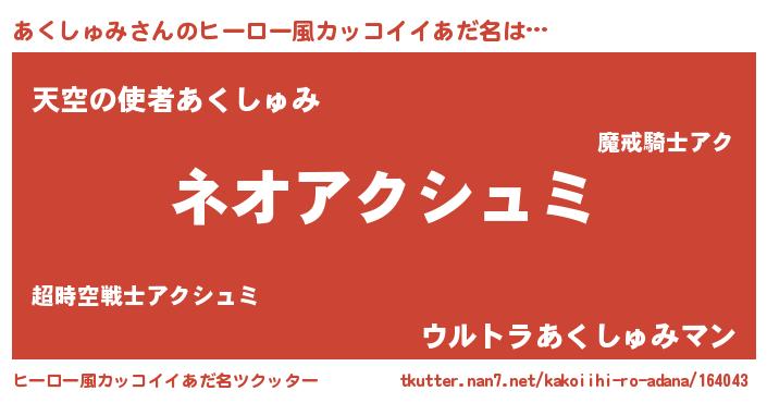 | ヘコむあだ名 | 『あくしゅみ(苦笑)』『レバニラ』 |