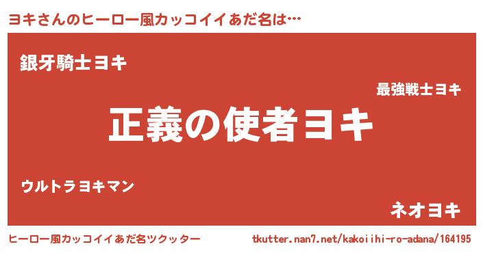 | ポケモン風あだ名 | 『ヨックウザ』『ヒヨキ』『ヨキゴンZ』 |