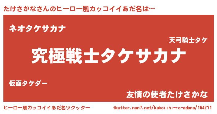 | ヘコむあだ名 | 『たけさかな(震え声)』『たけっ子』 |