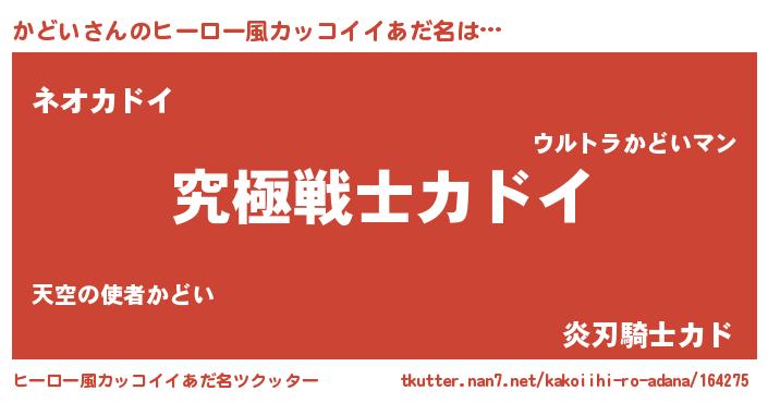 | ヘコむあだ名 | 『かどい(遠い目)』『かどを』『豆乳』 |