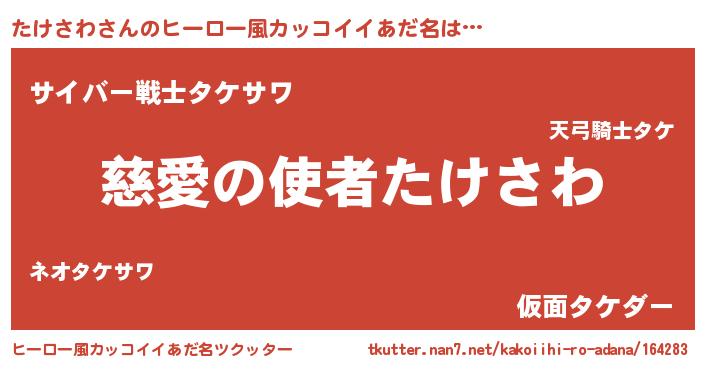 | 男性向けラノベタイトル風あだ名 | 『たけさわに滅ぼされるだけの簡単なお仕事です』 |