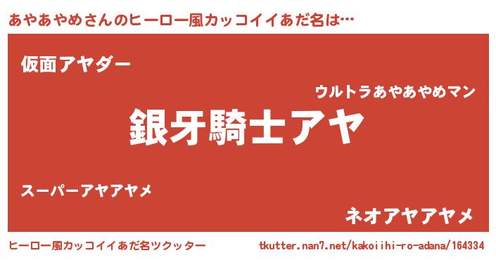 | ヘコむあだ名 | 『あや太郎』『あやあやめ(苦笑)』 |