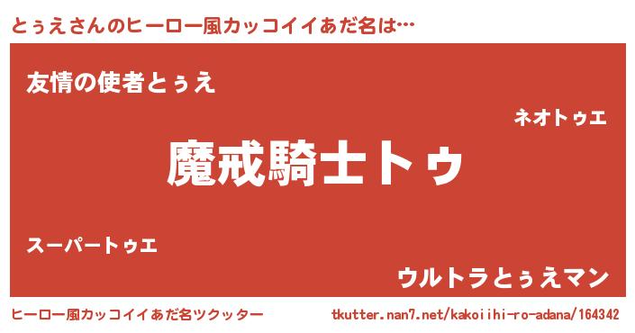 | 胡散臭い通販商品みたいなあだ名 | 『信頼と実績のサプリメント…その名も「とぅえ」』 |