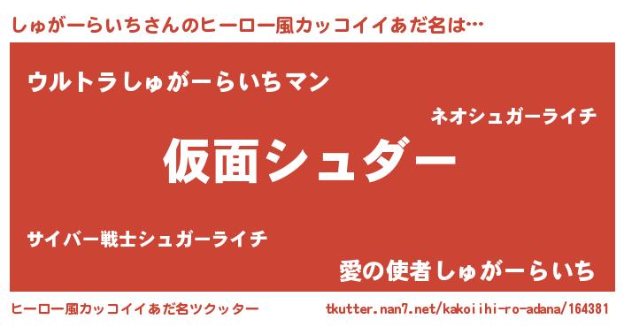 | 意味不明あだ名 | 『住所不定無職しゅがーらいち(81歳)』 |