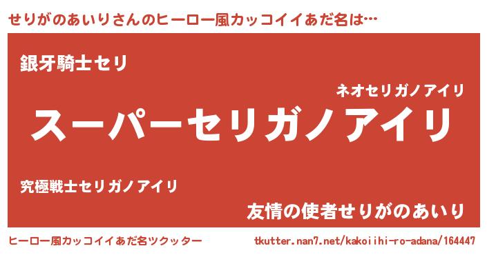 | 胡散臭い通販商品みたいなあだ名 | 『モテモテ間違いなしブレスレット…その名も「せりがのあいり」』 |