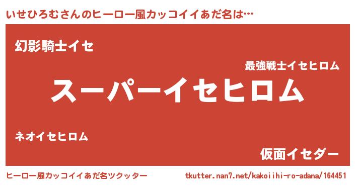 | 胡散臭い通販商品みたいなあだ名 | 『億万長者になれるブレスレット…その名も「いせひろむ」』 |