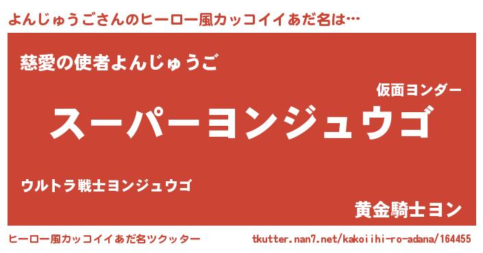 | 胡散臭い通販商品みたいなあだ名 | 『億万長者になれる霊験あらたかなお札…その名も「よんじゅうご」』 |
