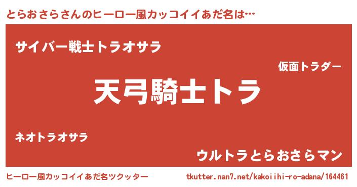 | 男性向けラノベタイトル風あだ名 | 『とらおさらの嫁は女の子じゃないと思った?』 |