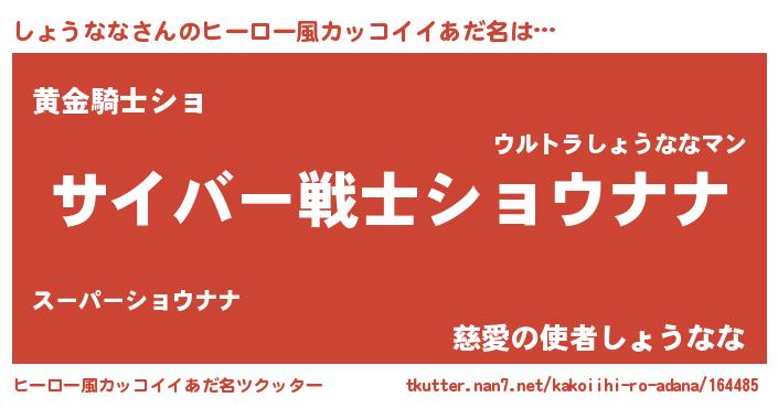 | 女子向けラノベタイトル風あだ名 | 『しょうななの玉の輿計画!』 |