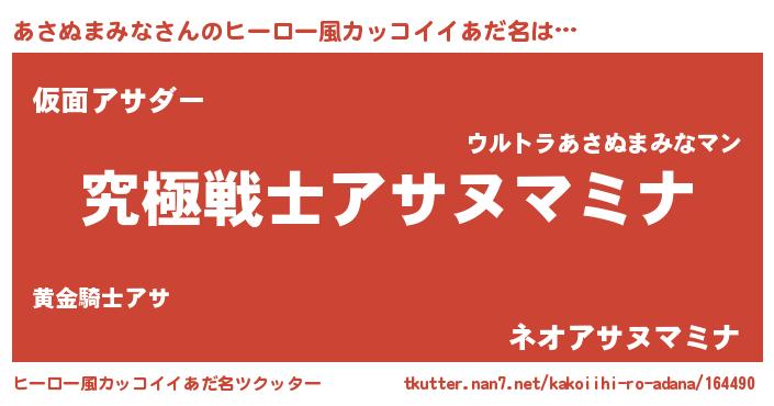 | 恥ずかしいあだ名 | 『アサヌマミナデラックス』『あさちん』 |