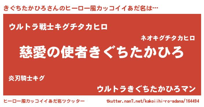 | 男性向けラノベタイトル風あだ名 | 『ノーゲーム・ノーキグチタカヒロ』 |
