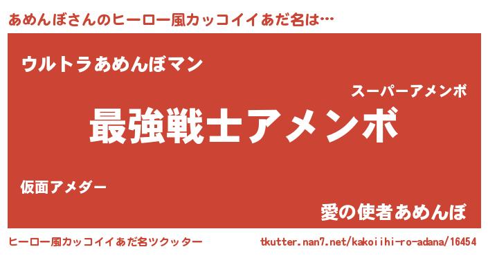| 男性向けラノベタイトル風あだ名 | 『Re:あめんぼから始める異世界生活』 |