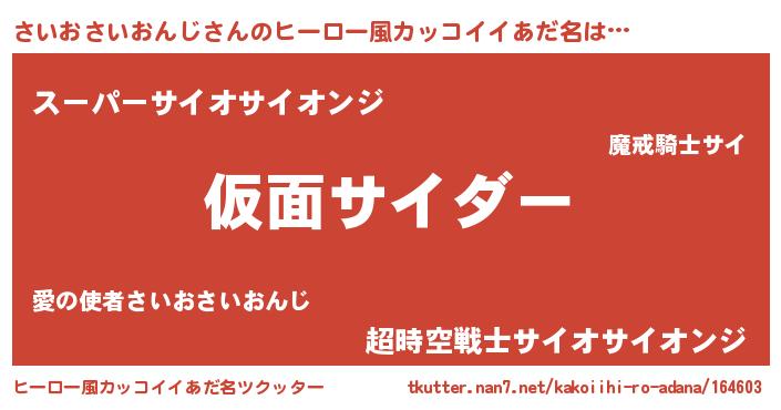 | 意味不明あだ名 | 『住所不定無職さいおさいおんじ(47歳)』 |