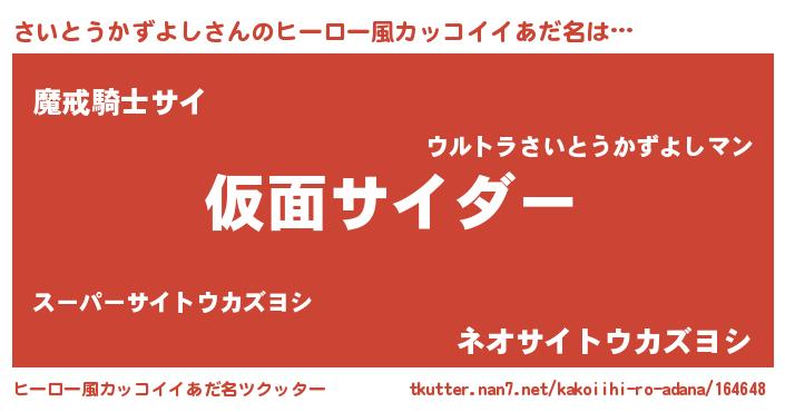 | 意味不明あだ名 | 『住所不定無職さいとうかずよし(59歳)』 |