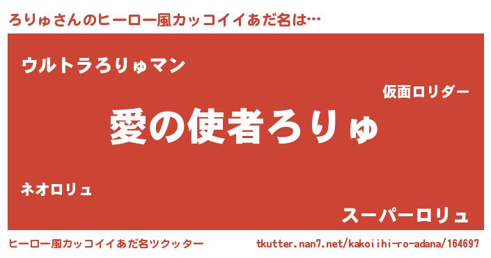 女子向けラノベタイトル風あだ名 | 『ろりゅの玉の輿計画!』 |