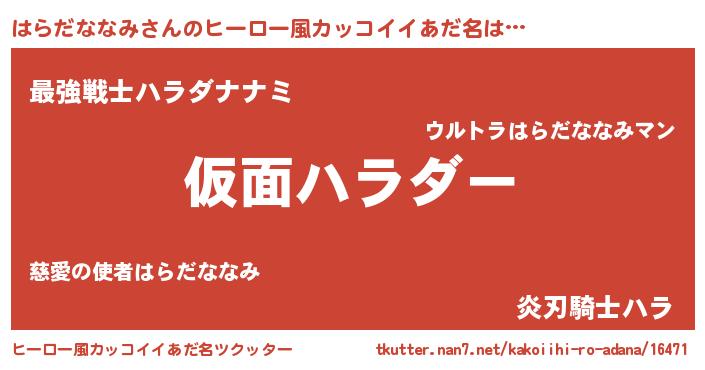 | 伝説のあだ名 | 『解き放たれた遊び人はらだななみ』 |