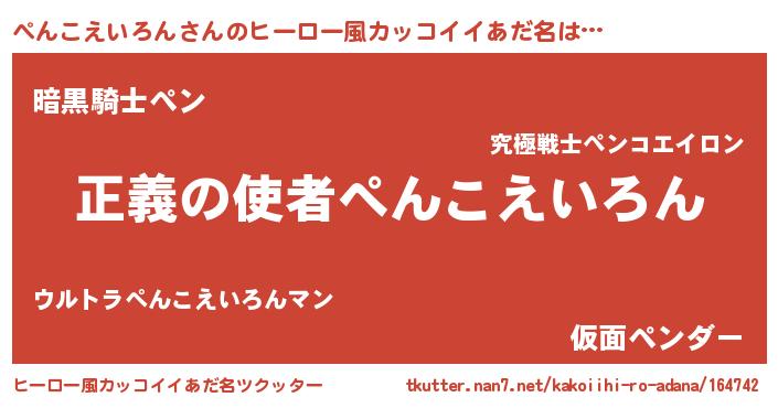 | 男性向けラノベタイトル風あだ名 | 『おまえをオタクにしてやるから、俺をぺんこえいろんにしてくれ! 』 |