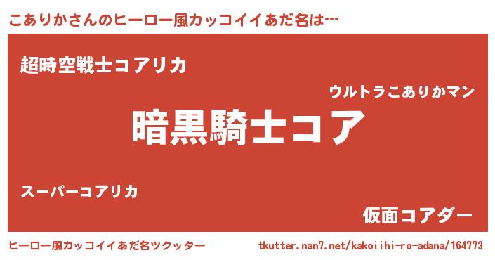 | 女子向けラノベタイトル風あだ名 | 『こありかは平凡を望む』 |