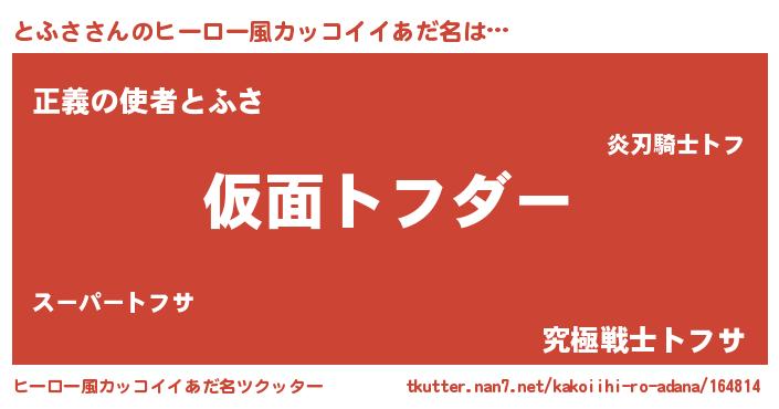 | 男性向けラノベタイトル風あだ名 | 『とふさに滅ぼされるだけの簡単なお仕事です』 |